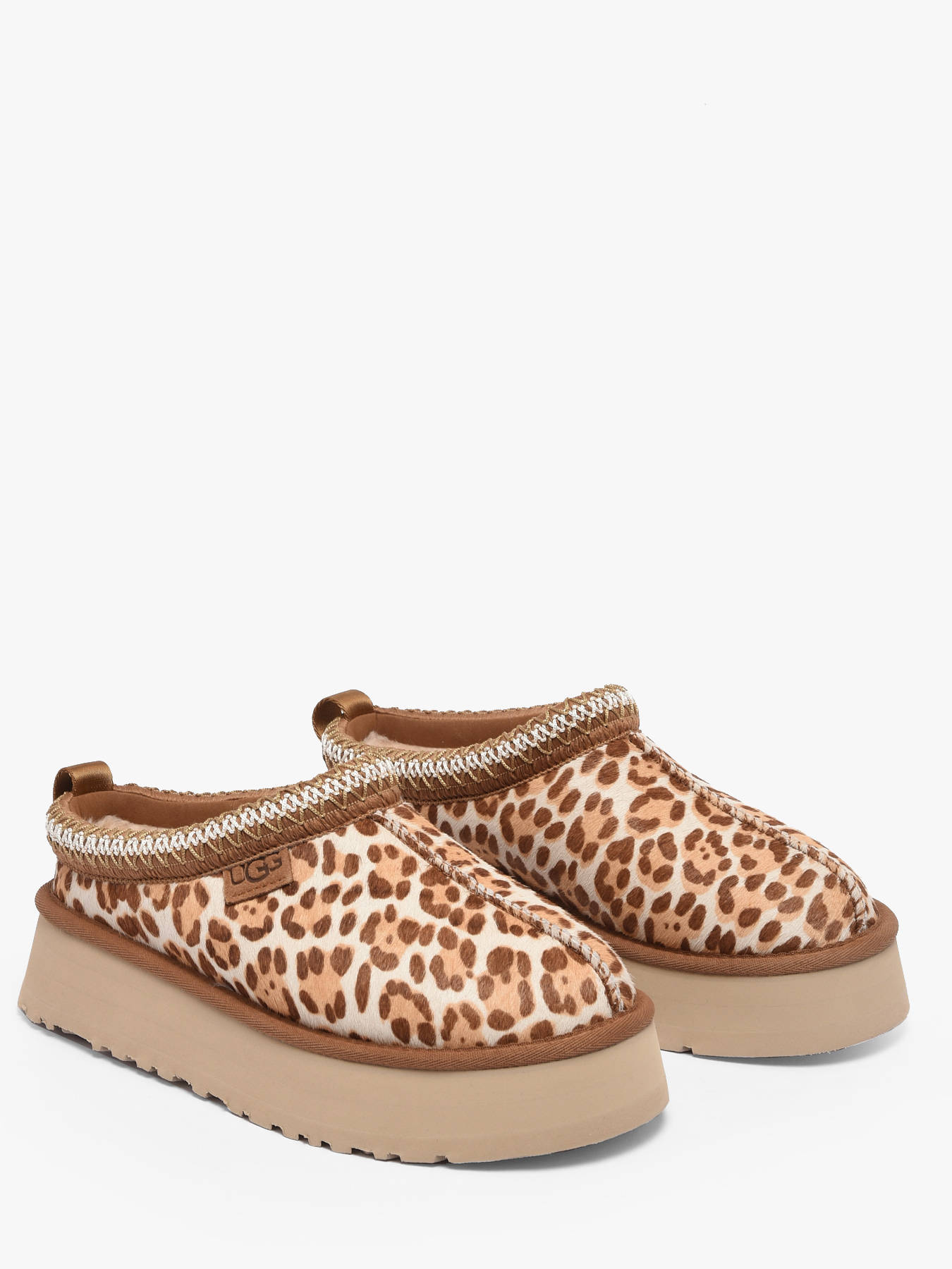 Découvrez les chaussons plateformes TAZZ PLAINS de la marque UGG, la version incontournable du Tazz II, revisitée avec un poil de vache à imprimé animalier léopard pour un look audacieux et tendance. Leur dessus en cuir et textile allie style et résistance, tandis que la doublure et la semelle intérieure en textile garantissent confort et respirabilité tout au long de la journée. Faciles à enfiler grâce à leur design pratique, ces chaussons plateformes UGG offrent un chaussant agréable et polyvalent, parfait pour un usage quotidien ou pour compléter vos tenues casual avec une touche originale et moderne. Élégants, confortables et stylés, ils incarnent l’esprit contemporain et la qualité emblématique de la marque.